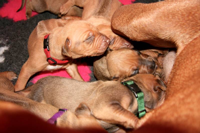 De pup's groeien als kool. Moeder Contiki doet het super met haar pup's