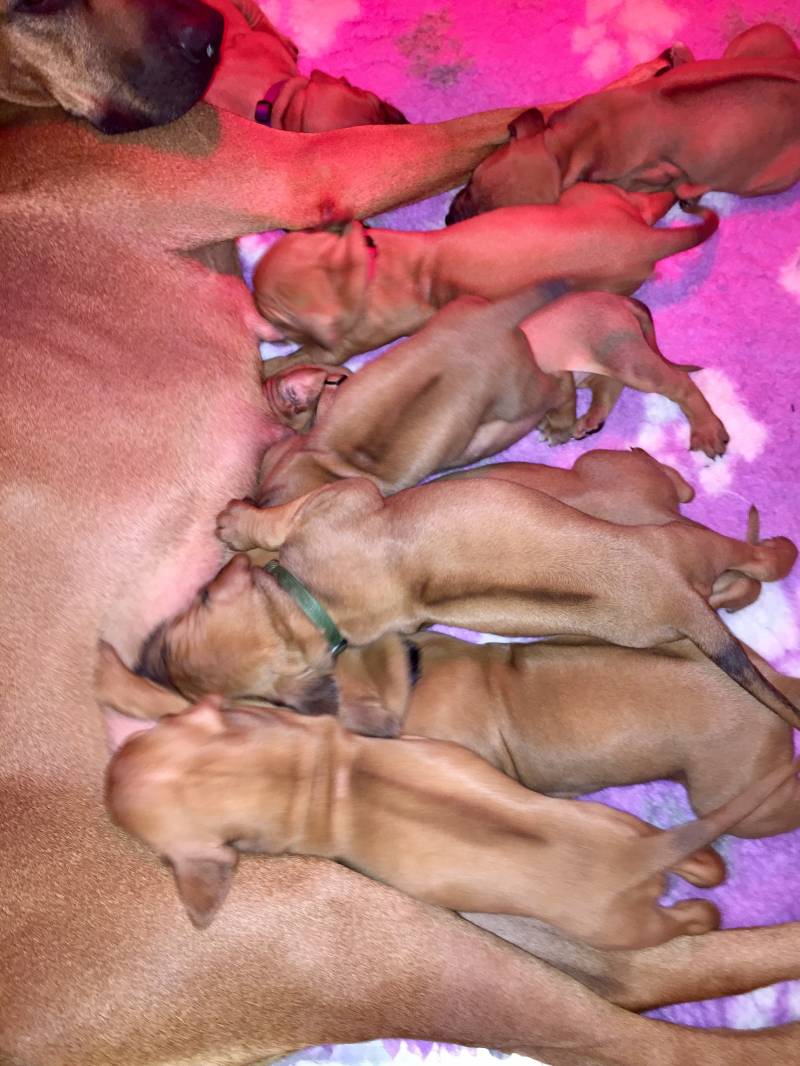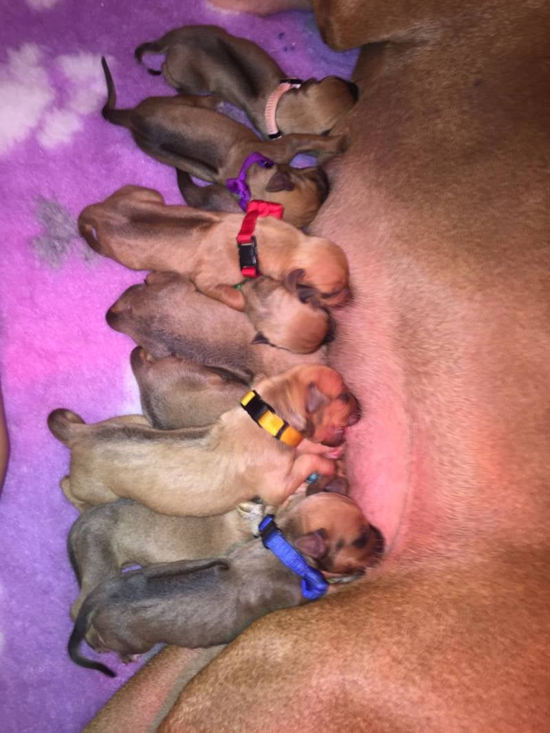 5 reuen en 4 teven . Ze hebben alle 9 een mooie Rige mee gekregen. 1 jongen en een Meisje hebben een bruinen neus. Een liver. Dat zie niet in elk nest, dus een beetje bijzonder ☺️